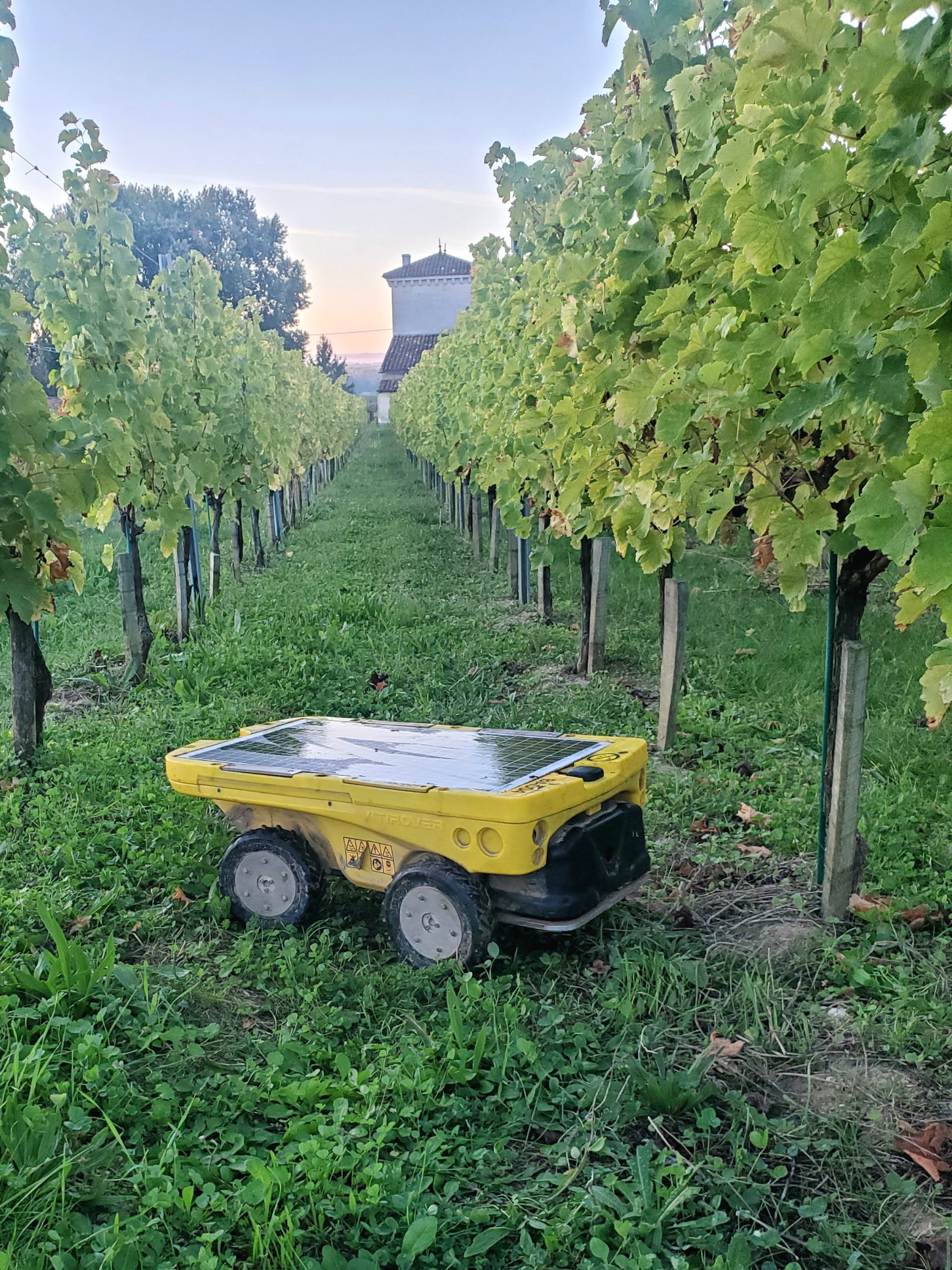 Installés sur plusieurs parcelles du domaine, les quatre robots jaunes de Vitirover assurent une tonte autonome, silencieuse, sans émission, parfaitement adaptée aux contraintes du terrain viticole. Grâce à deux stations de recharge, dont une solaire, les robots fonctionnent en continu, sans interruption, et sans perturber la vie du sol ni la biodiversité environnante.